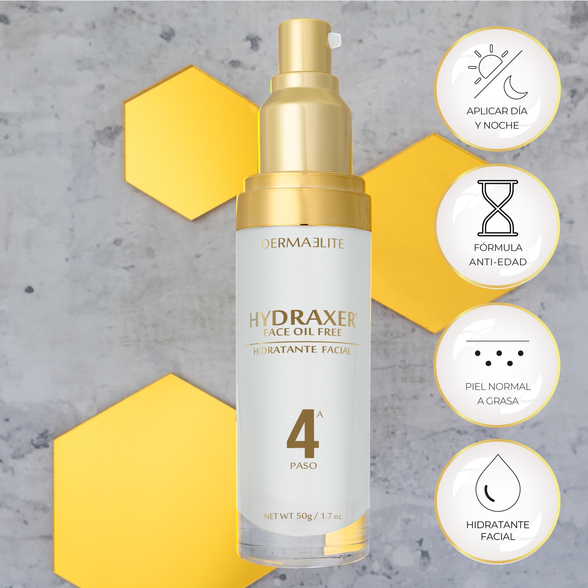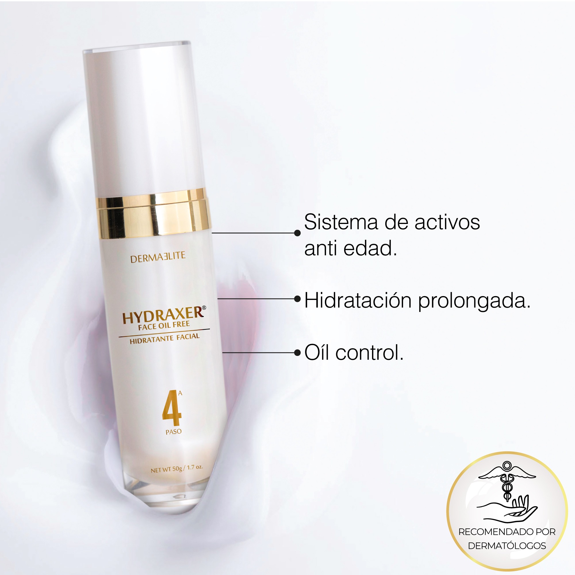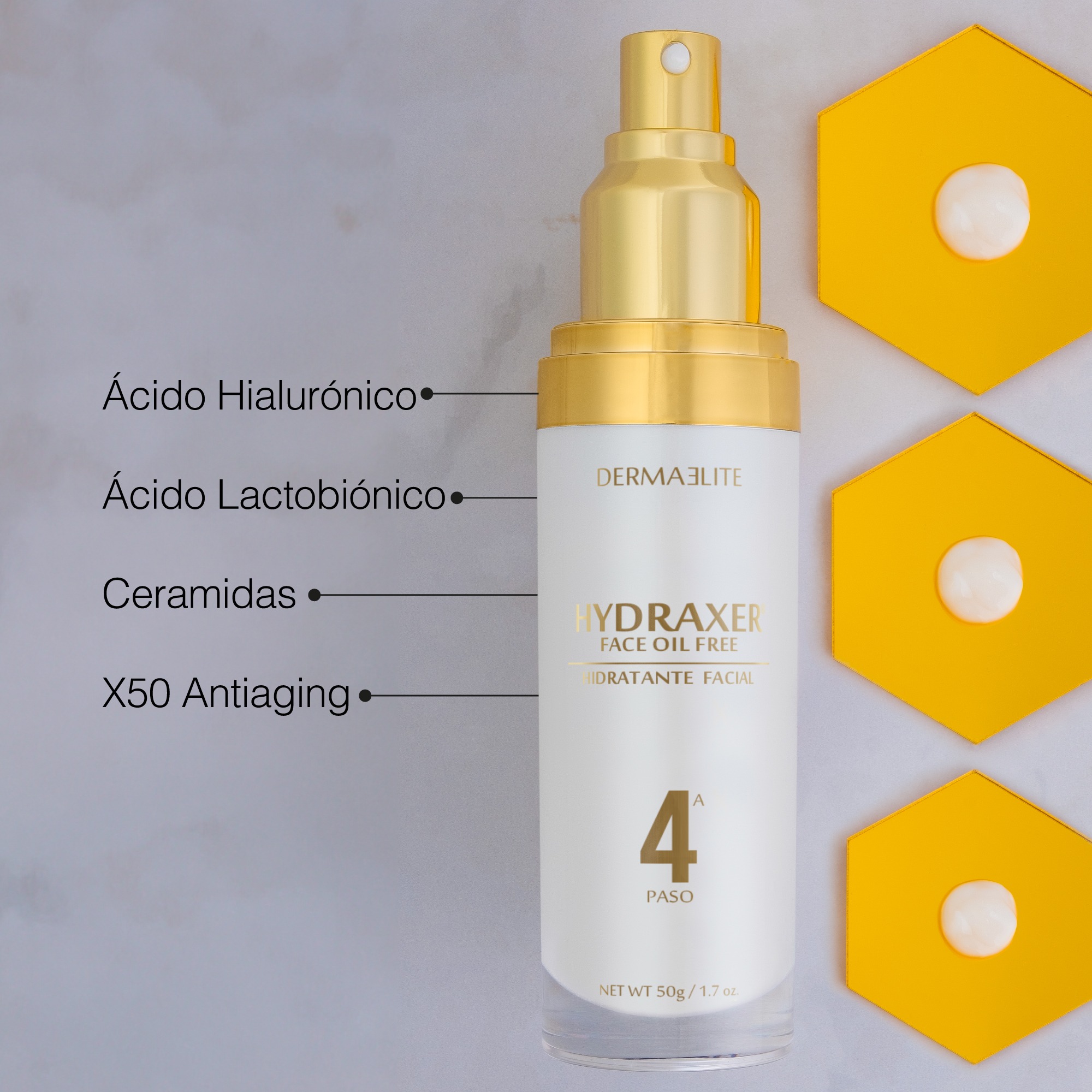 Fórmula innovadora que contiene X50 Antiaging, péptido encapsulado e inteligente con acción selectiva hacia las células que producen componentes esenciales para mantener una piel joven. Ofrece hasta 72 horas continuas de hidratación por acción sinérgica del Pentavitin, Acido lactobionico, Acido hialuronico y ceramidas. Contiene Vitamina E molécula que inhibe radicales libres evitando el envejecimiento y el daño celular. Es ideal para pieles jóvenes y grasosas gracias al efecto del Zinc PCA, componente que regula la producción de sebo en la piel.