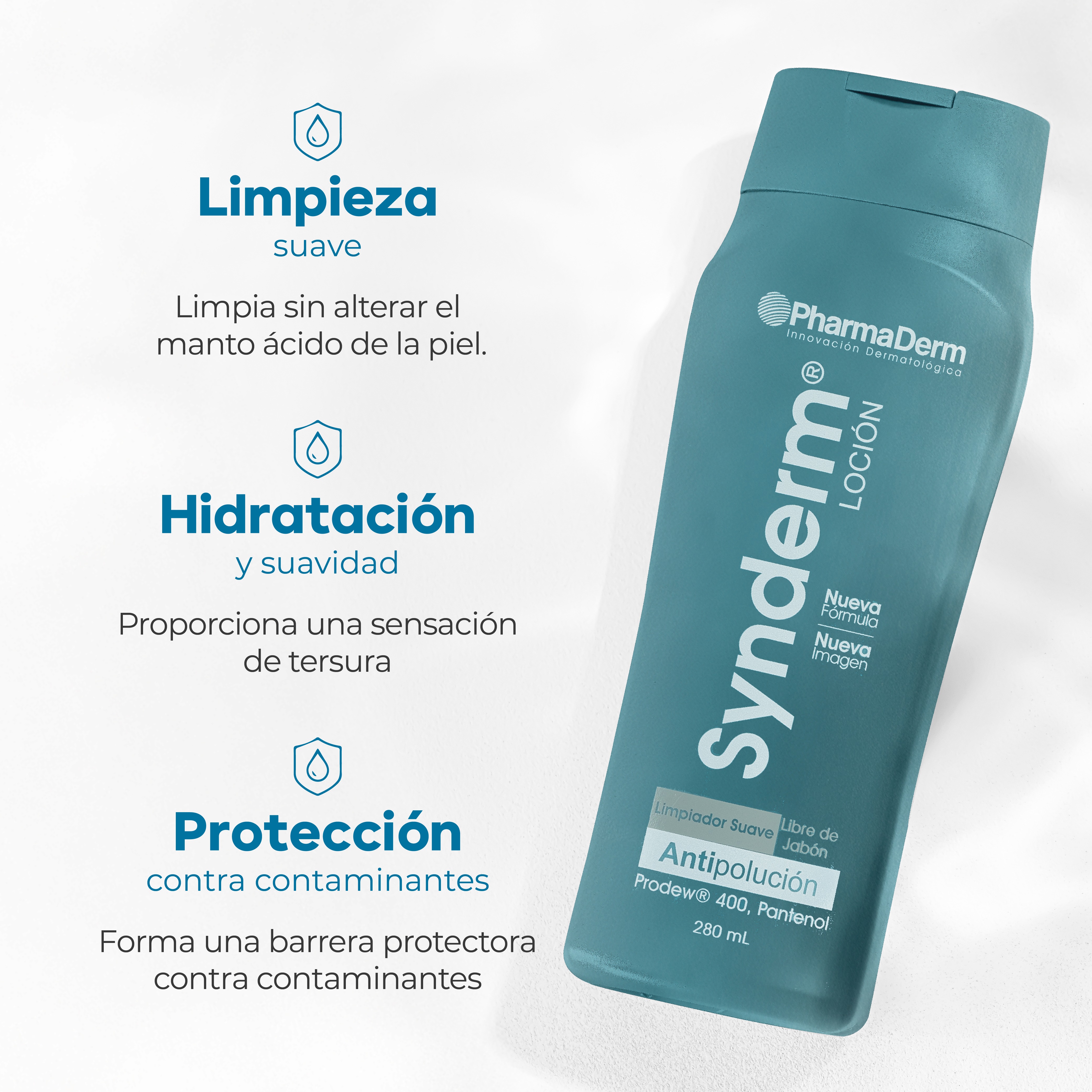 Transforma tu rutina de limpieza facial en un momento de cuidado y placer con Synderm Loción. Este limpiador facial de fórmula moderna y libre de jabón está especialmente diseñado para brindar una limpieza profunda pero delicada, respetando el equilibrio natural de tu piel. Cada aplicación envuelve el rostro con una textura suave y ligera, eliminando eficazmente impurezas, exceso de grasa y restos de maquillaje, mientras deja una sensación de frescura e hidratación que perdura.